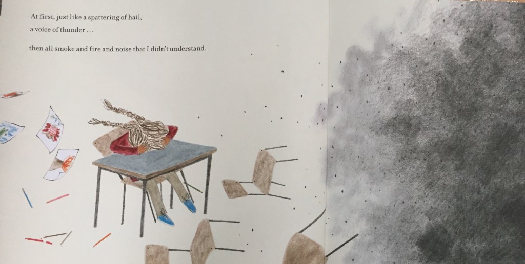 Nicola Davies’ poem was first published on the Guardian newspaper’s website – and came from an account of a refugee child being refused a place at school because there was no chair for her. As a result, an empty chair came to symbolise ‘those children who had lost everything and had nowhere to go – and no chance of an education’.