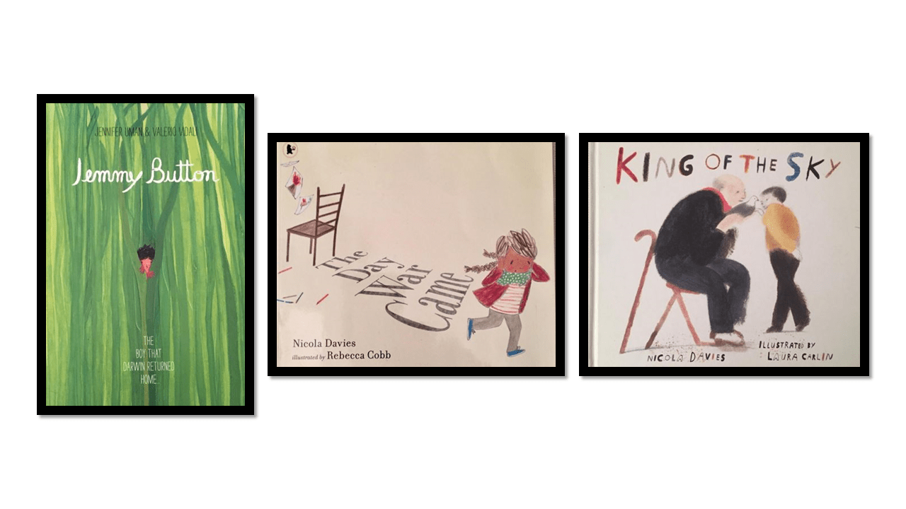 The first book to catch my eye was Jennifer Uman and Valerio Vidali’s ‘Jemmy Button’: a beautifully written, cleverly illustrated read about a boy from the islands of Tierra del Fuego, South America.