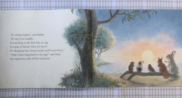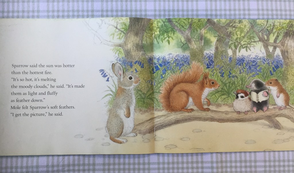 Reading and re-reading the text, in the library and at home, would allow her to absorb the richness of the language in Jeanne Willis’ ‘Mole’s Sunrise’ – the imagery, the alliteration, the similes…