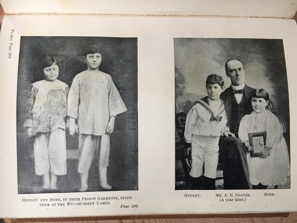 The narrative follows the young Glover family’s journey through China at the height of the Boxer Rebellion (1899-1901). Miss Caroline Gates accompanied Mr Archibald Glover, Mrs Flora Glover, Hedley Glover (4 years old) and Hope Glover (3 years old) when they fled from their mission station in Lu’an, Shansi (now Changzhi, Shanxi) on July 6th 1900. Interestingly, their escape led them to safety in Hanchow (now Wuhan), China.