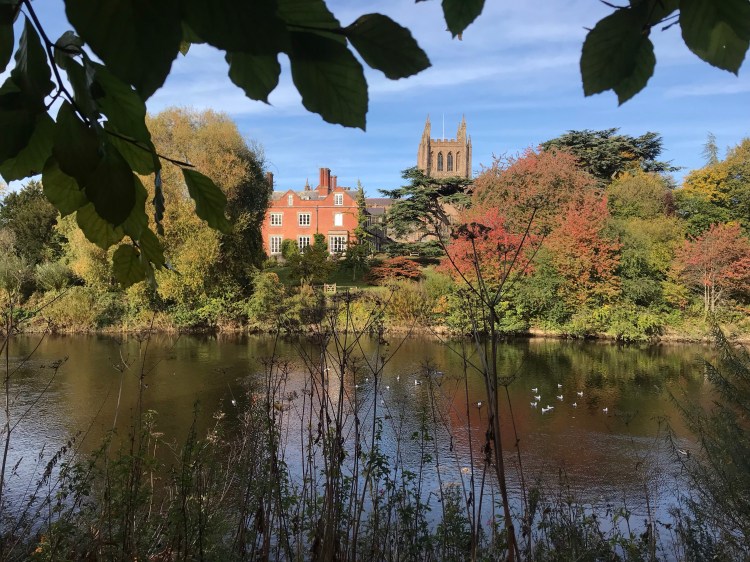 …to a view across the River Wye of the Bishop’s Palace and Hereford Cathedral: