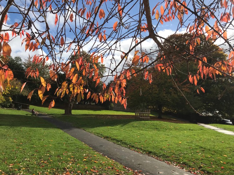 Autumn leaves of Castle Green, Hereford: