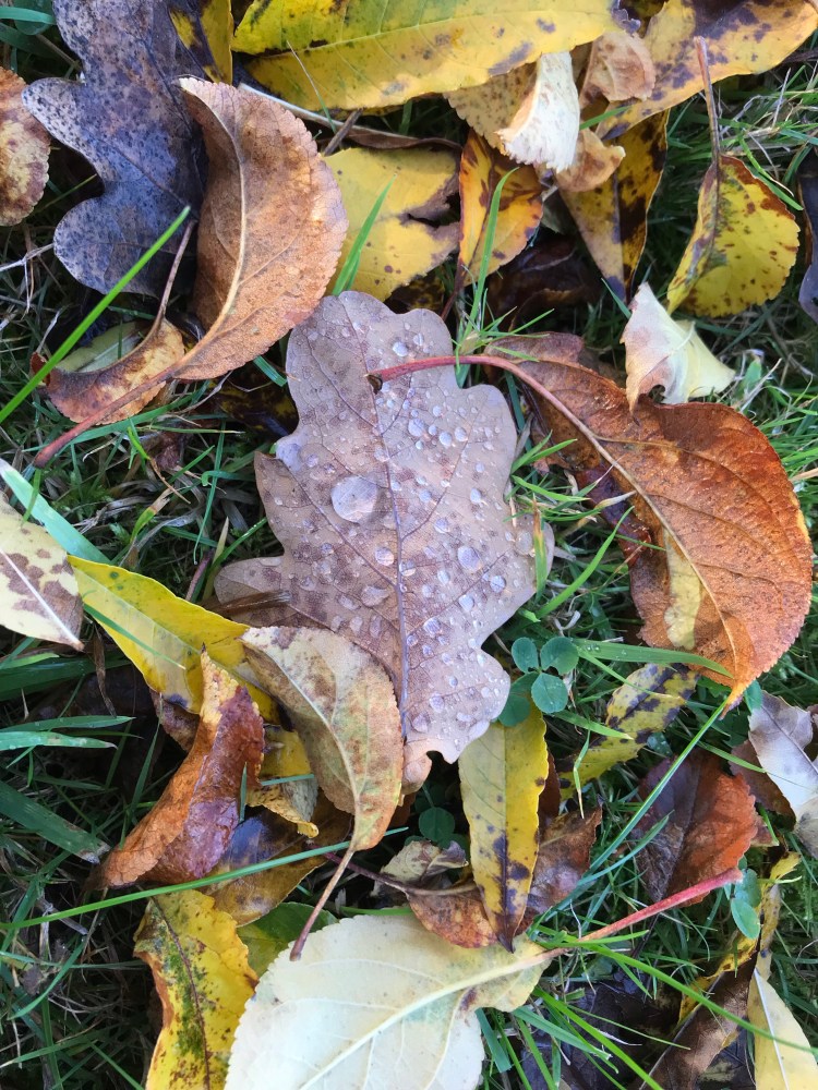 From a fiery leaf on the pavement by the bus stop in Ledbury: