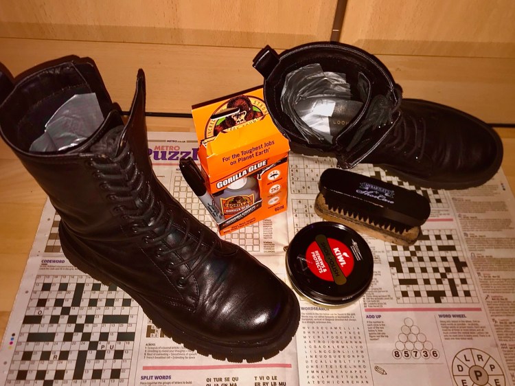 I’ve loved these boots and I’ve worn them to all of my face-to-face interviews in 2024. They are held together with gaffer tape and gorilla glue. I used a black sharpie and shoe polish to disguise my repairs. My make-do-and-mend efforts gave me a sense of satisfaction I haven’t yet achieved in my job search…