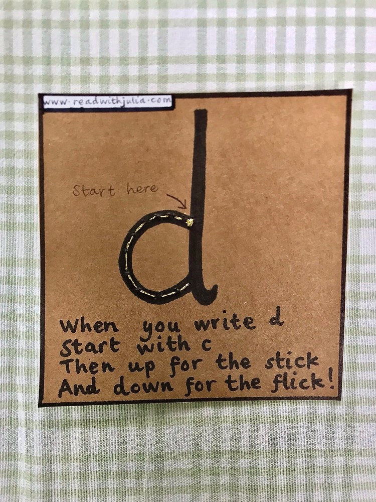 When I write, I slip in a little pointer here and there (for example, a bit of help to support my fledgling writer to overcome his b/d confusion):