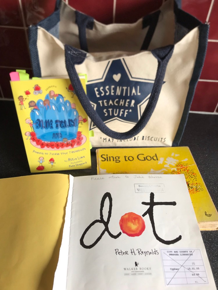 I took a bag with me, which I had received as a gift from Hayden and the Gardiner family when he moved on from my reception class at Ledbury Primary School in July 2022. In my bag, I carried a selection of books, including a poetry book, a picturebook and a children’s hymn book.